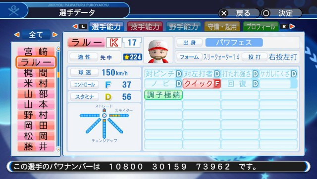 まだ査定をあまりしてなかった頃に作ったやつなのであれですが、球速安定とかは検討次第な感じありそう。